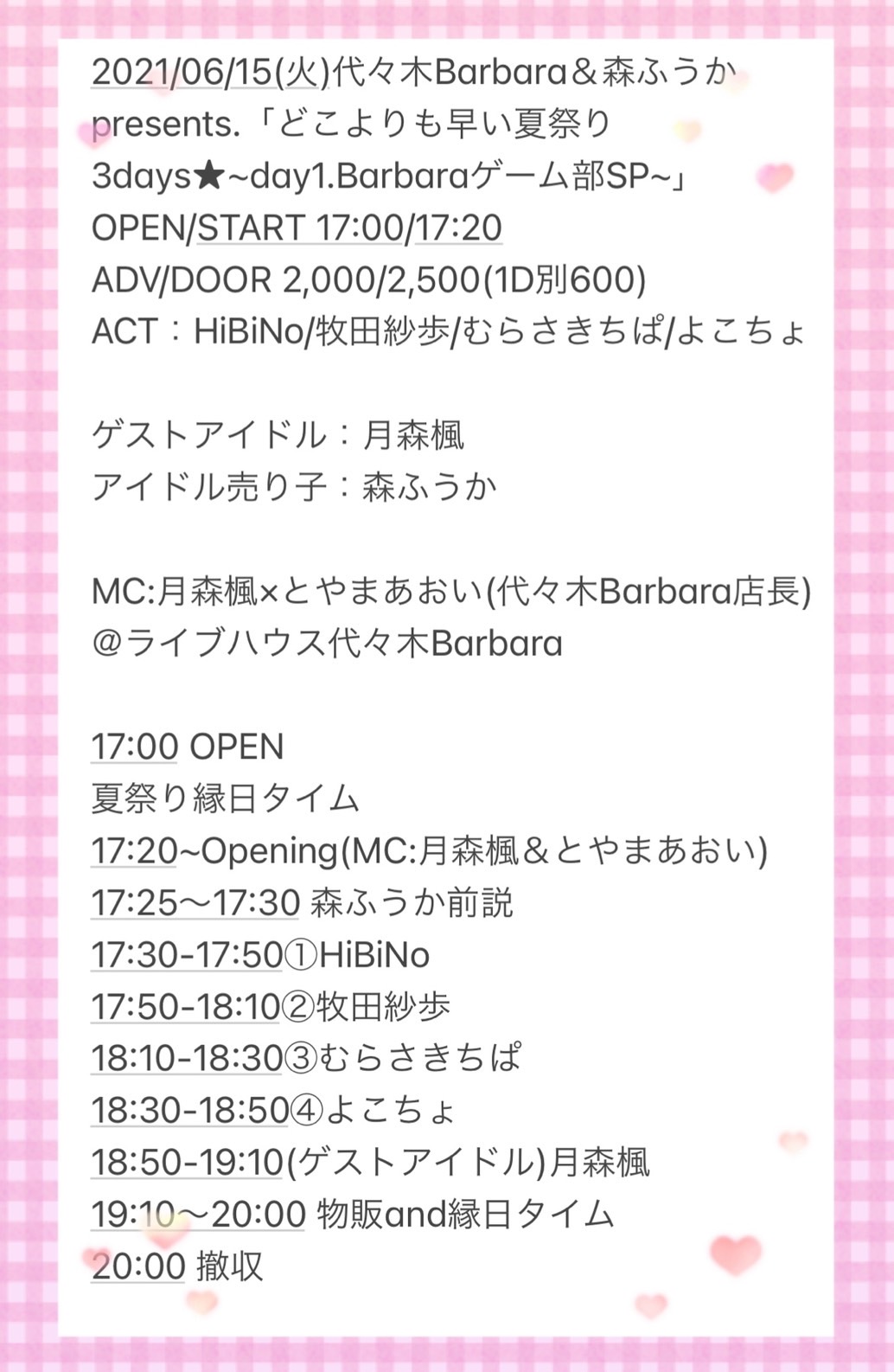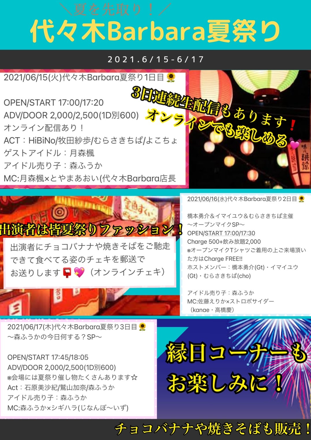 2021/06/15(火)代々木Barbara&森ふうかpresents.「どこよりも早い夏祭り3days★~day1.Barbaraゲーム部SP~」