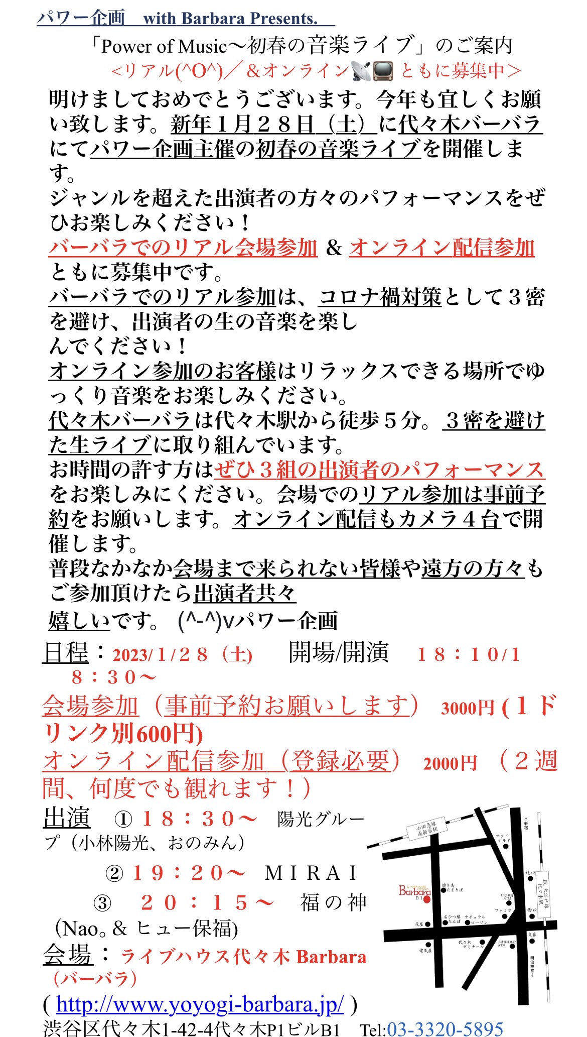 パワー企画主催「Power of Music~初春の音楽ライブ~」