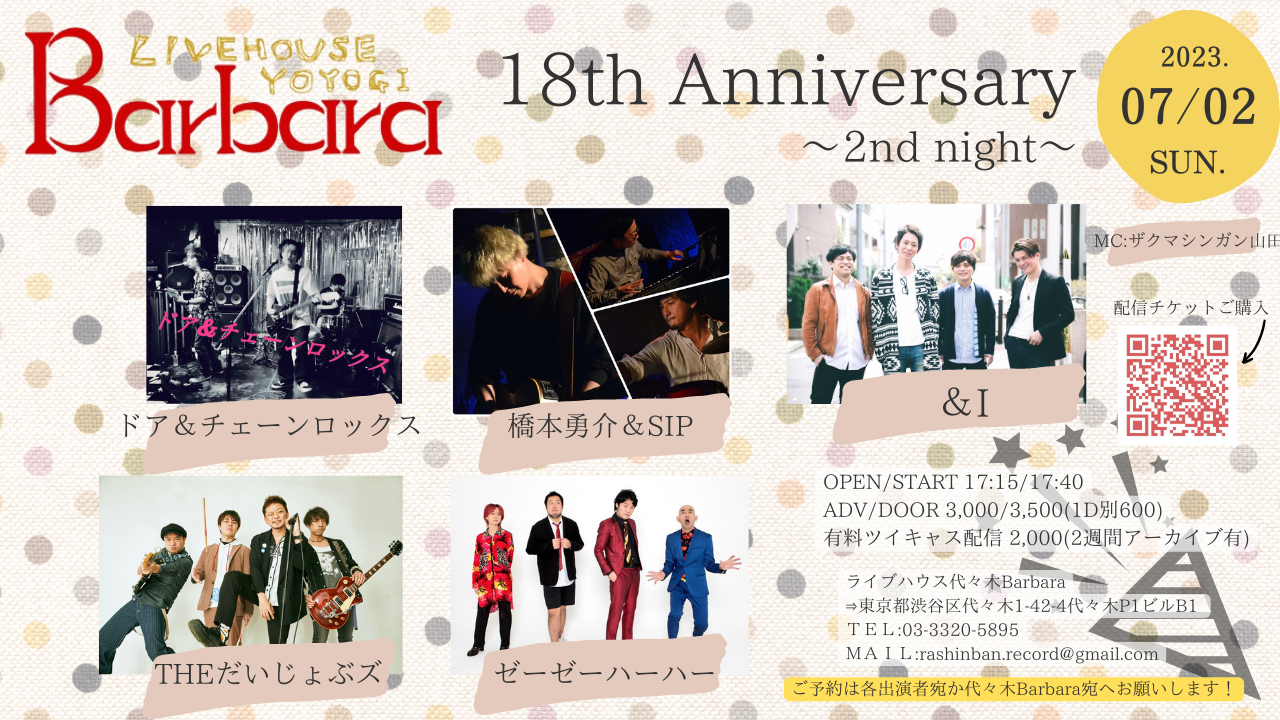2023/07/02(日)代々木Barbara 18th Anniversary~2nd Night~